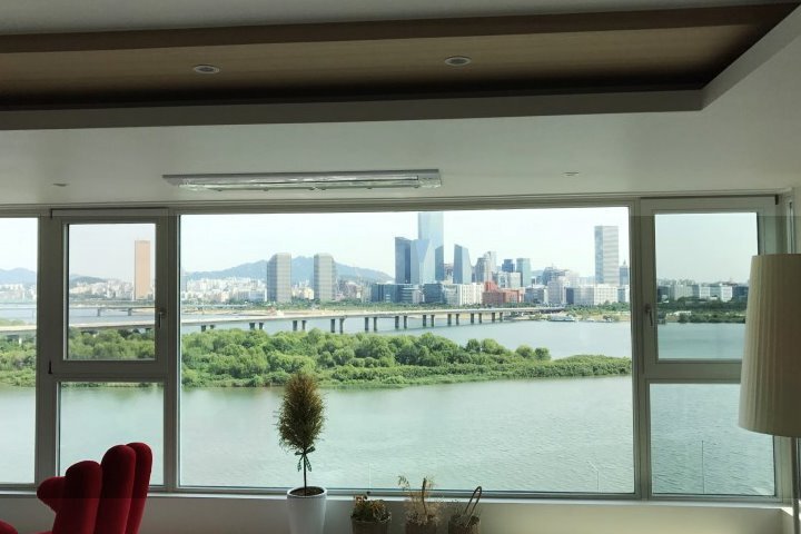 김성령의 집(아파트)은 보다 한강을 가까운 곳에서 바라볼 수 있다는 점이 특징이라고 하는데요, 강의 푸른색과 밤섬의 초록색, 도시의 회색으로 한층 색이 다양하다고 합니다. 거주자는 밤섬 덕분에 사계절을 누릴 수 있는 것인데요, 또한 저층이 대부분인 청담자이와 달리 맞은 편에 여의도 빌딩 숲과 63빌딩이 있어 한 폭의 그림 같은 뷰를 자랑한다고 합니다.