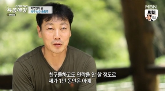 송종국은 지난 29일 방송된 MBN 교양프로그램 '현장르포 특종세상'에 출연해 강원도 홍천에서 자연인으로 지내는 일상을 보여주었습니다.