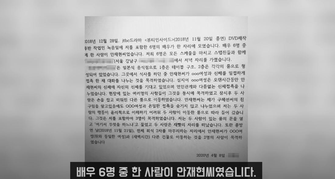 유튜버 이진호는 한 온라인 커뮤니티에 게시된 글을 캡처해 공개했습니다. 익명의 네티즌은 "여배우 B 씨가 안재현에 관해 쓴 진술서"라고 주장했습니다.