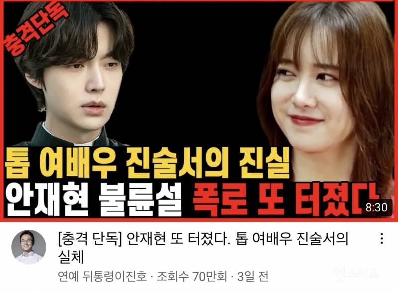 유튜버 연예 뒤통령이진호는 '[충격 단독] 안재현 또 터졌다. 톱 여배우 진술서의 실체'라는 제목으로 영상을 올렸습니다.