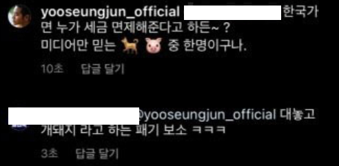 유승준 인스타에는 댓글로 누리꾼과 언쟁을 펼치는