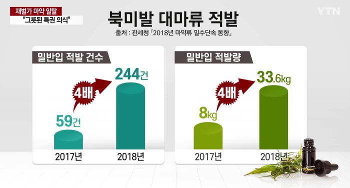 북미 지역에서 대마류를 들여오다 적발된 양은 지난해에만 4배 넘게 늘었다.