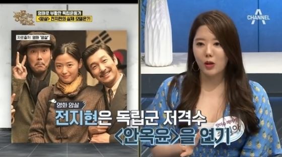 채널A의 [풍문쇼-풍문으로 들었쇼]에서는 영화 [암살]에 출연한 전지현과 그의 역사관 논란에 대해 이야기를 나눳어요.