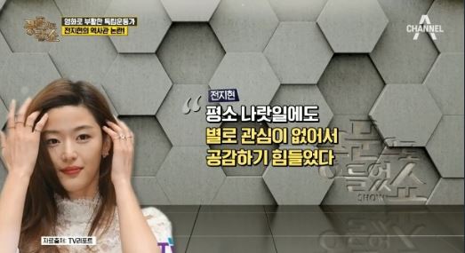 이에 레이디제인은 “한 영화 관련 인터뷰에서 논란이 된 적이 있다며. 전지현은 그 당시 인터뷰에서 ‘독립이나 민족정신에 크게 관심있었던 것도 아니고 평소 나랏일도 별로 관심이 없어서 공감하기 어려웠다’고 말했다”고 전했지요.