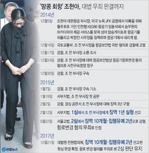 그 혐의로 1심에서는 실형을 선고 받았으나 이에 항소하여 항로변경 혐의는 무죄!! 징역10개월과 집행유예 2년을 선고 받아 석방 됩니다.