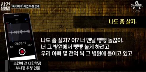 잘지내보려고 했지만 조현아는 전혀 고쳐칠 기미가 보이지 않았고 신경쇠약과 노이로제로 고통을 받았다고 전했다.