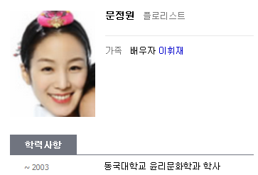 이렇게 이휘재 소속사는 공식 대응을 했고, 현재는 네이버 프로필란에도 문정원 동국대학교 졸업으로 변경합니다.