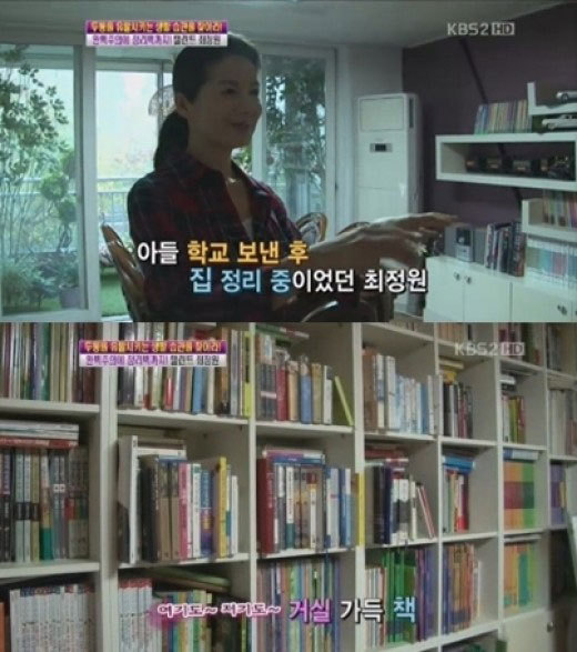 공개된 최정원 집안에는 책이 가득했고, 결벽증에 가까울 정도로 최정원은 책을 깔끔하게 정리합니다.
