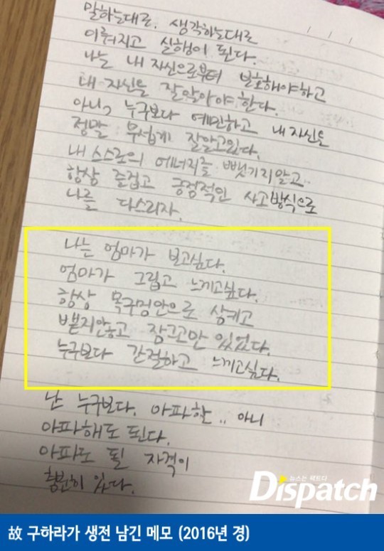 구하라가 극단적인 시도를 할 때마다 가장 먼저 간 것은 오빠라고 하는데요, 하지만 병원에서는 보호자로 부모를 요구했고 어느 날, 아빠가 올 수 없는 상황에 놓여 어쩔 수 없이 엄마에게 연락을 했다고 합니다.
