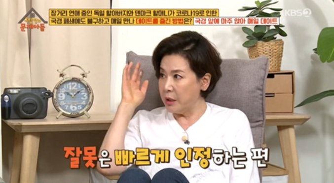 이어 “어렸을 때 만났으면 못 살았다. 서로 나이를 먹었기 때문에 배려하고 희생하며 사는 것”이라고 말하며 “내가 정을영 감독을 참 좋아하나 봐, 난 그 남자가 우선이었어”라고 뜨거운 애정을 고백하기도 했습니다.