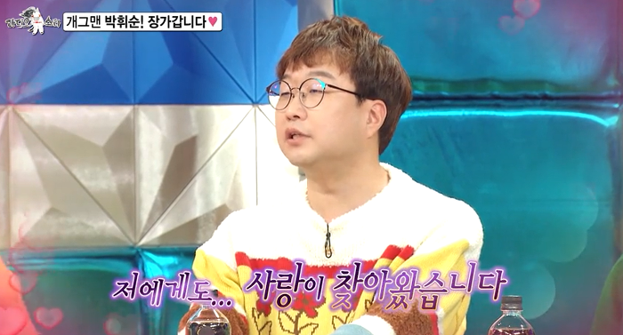 박휘순은 자신의 예비신부에 대해 "여자 친구와 만난 지 한 3개월 정도 됐을 때 놓치고 싶지 않다는 생각이 들었다. 같이 있으면 너무 든든했다“라고 설명했는데요.