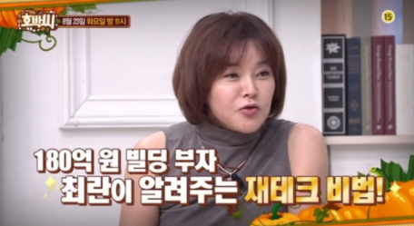 배우 최란은 부지런히 저축해 통장 100개를 만들고 건물까지 마련해 ‘재테크의 여왕’이라고 불린다고 하는데요. 180억 대의 건물을 보유 부동산 부자로도 유명하다고 합니다.