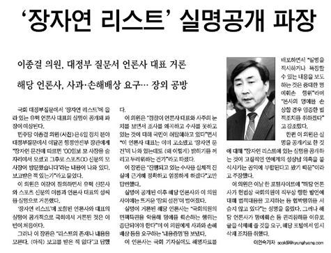 고 장자연 사건은 지난 7월 MBC 교양프로그램 ‘PD수첩’에서 집중적으로 다루며 다시 한 번 파장이 일기도 했었다. PD수첩에서는 ‘장자연 리스트’에 거론된 유력 인사들의 실명을 공개하기도 했다.