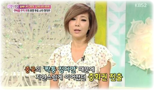 또한, 정다연-일명 ‘몸짱 아줌마’로 왕성한 활동을 벌이고 있는 정다연의 성공 스토리가 네티즌의 부러움을 사기도 했다. 정다연은 “일본 중국 대만 할것 없이 이곳저곳 돌아다니며 방송활동 중이다”고 말했다. 정다연은 탕웨이 후속으로 화장품 모델로 활동하기도 했다고 덧붙였다.
