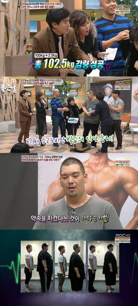 2008년 홀라당으로 데뷔한 빅죠는 280kg 몸무게로 화제를 모았고, 이후 2013년 숀리와 함께 다이어트에 성공 150kg까지 약 130kg을 감량했습니다.