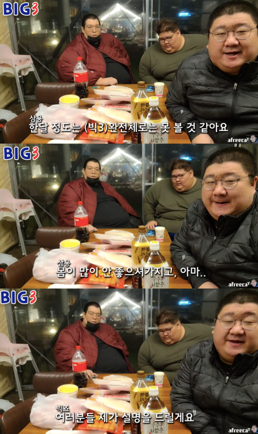 앞서 빅죠는 지난달 12일 유튜브 채널 '엄삼용'을 통해 건강악화로 활동을 중단할 예정이라고 밝혔습니다. 빅죠는 요요현상으로 인해 최근 몸무게가 320kg로 급증했고, 신부전과 당뇨 등 건강이 악화됐다고 밝혔습니다.