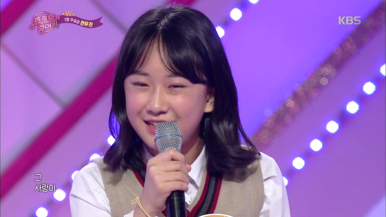 전유진은 2019년 7월 26일 19회 포항해변전국가요제에 참가하여 대상 수상을 했습니다. 2019년 10월에는 음악 예능 프로그램 '노래가 좋아'에 참가하여 트로트 신동으로 불렸다고 합니다. 1회에서는 우승을 했고 결선에서는 준우승을 했습니다. 우승은 트로트 가수 '조명섭'이 했다고 하네요.