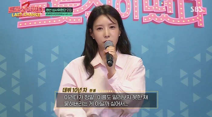 화려한 연예인보다는 실력 있는 트로트 가수가 되고 싶다는 그녀인데요. 가수 한봄을 비롯한 실력은 있으나 이름이 알려져 있지 않은 많은 무명가수들의 도전을 응원합니다.