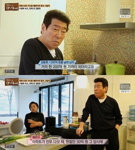 혜은이는 전 남편 김동현과 이혼 후에도 빚을 갚고 있는 중이라고 하는데요, 현재 100억 빚을 갚았다고 하네요. 혜은이가 가슴이 아픈 건 어머니 집까지 잃고,또 아버지 집까지 판 거라고 하네요~~