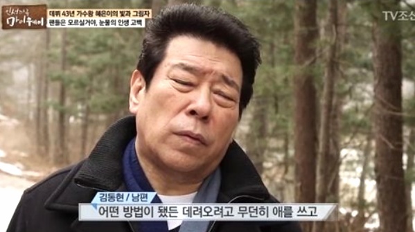 혜은이는 지난 2017년 방송된 TV조선 인생다큐 마이웨이 에 출연해 당시 상황에 대해 털어놓은 적이 있었는데요, 방송을 통해 김동현은 "워낙 영화에 제가 돈을 많이 잃었다. 거의 200억 원 가까이 잃었다"고 고백했습니다.