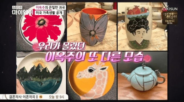 이옥주는 "큰 아들이 속을 썩일 때마다 취미가 하나씩 는다. 뭔가를 계속 시작한다. 도자기는 큰 아들, 그림은 둘째 아들 때문에 시작했다. 우리 막내 때문에 뭘 시작하지 않을까 싶다"며 웃어보였는데요. 스트레스를 주로 예술 작품을 만드는데 사용하는 것 같습니다.