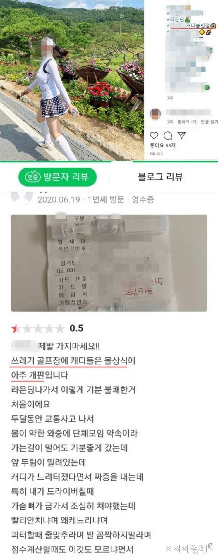 환불 요구가 받아들여지지 않자 골프장 홈페이지에 후기를 적어 불만을 표시했으며, 해당 글에서 경기보조원을 향해 "쓰레기" "캐디들 몰상식" 같은 단어를 사용하였다고 합니다. 또한 캐디가 빨리 공을 치라며 자신에게 짜증을 냈으며 SNS에는 골프장 이름을 적시하며 다시는 가지 않겠다고 글을 올렸습니다.