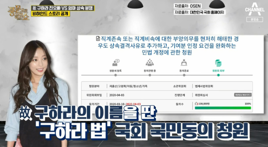 구하라는 지난해 11월 세상을 떠났습니다. 구하라의 친부는 자신의 상속분을 오빠인 구호인 씨에게 양도했는데요, 이 과정에서 구하라가 9살 때 집을 나가 20년 가까이 연락되지 않고 있던 친모도 상속을 요구하면서 재산분할 논란이 일었습니다.