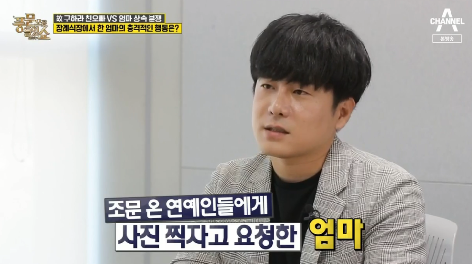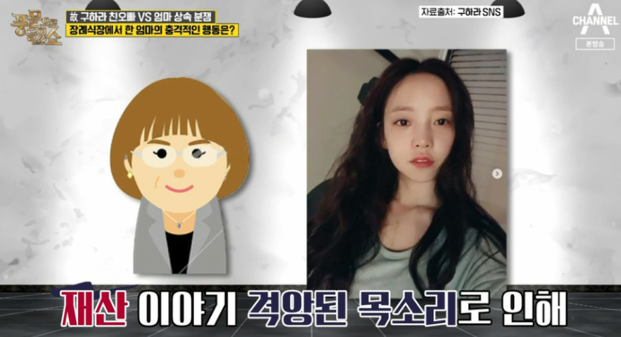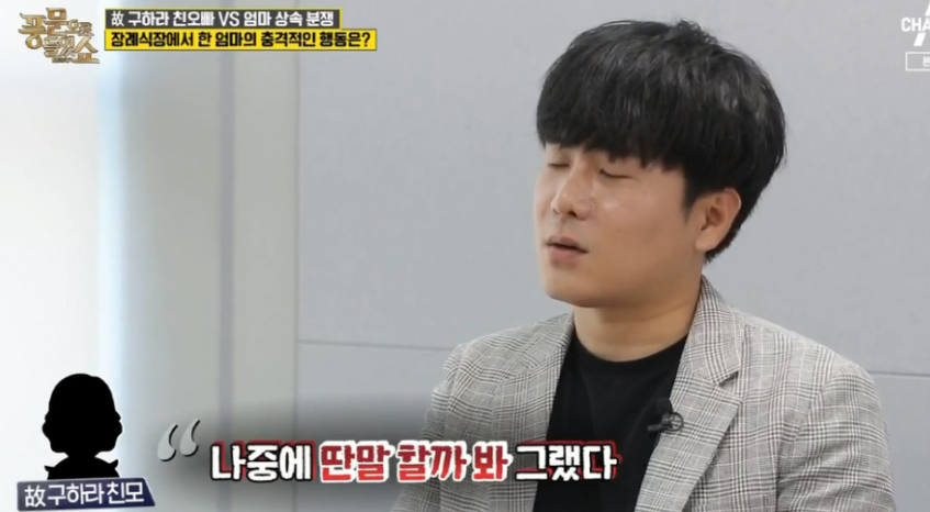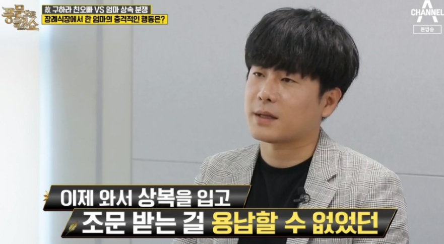 이제 와서 상복을 입겠다고 하길래 이를 용납할 수 없어서 구하라의 오빠는 말렸고 말싸움을 하는 사이 친모의 핸드폰이 켜져 있는 것을 보았답니다. 확인 결과 장례식장에서의 모든 것을 녹음하고 있었다고 하네요.