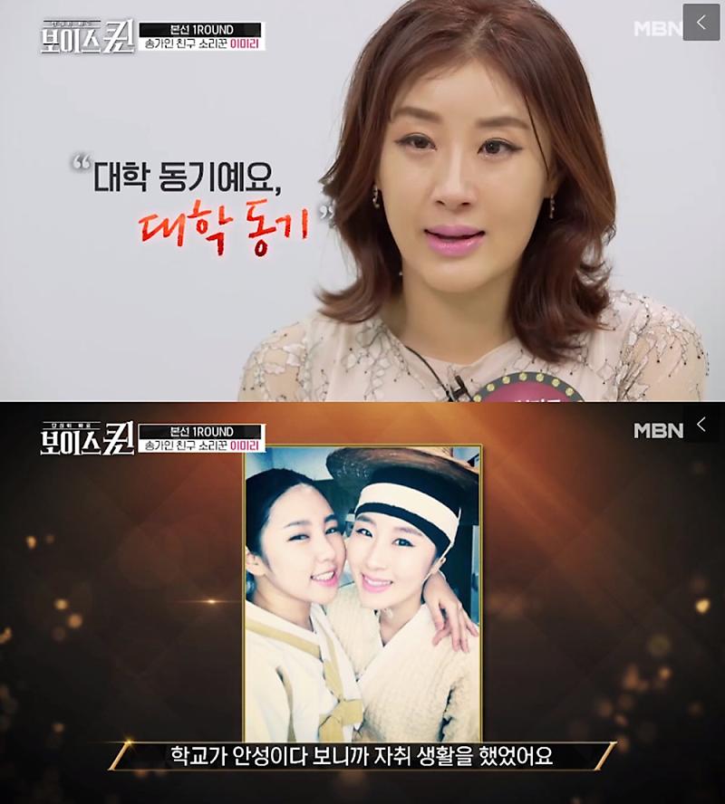 송가인 절친으로 대학 동기이며 학교에선 자신이 송가인보다 잘나갔다고 합니다. 노래는 송가인이 더욱 잘했고 끼는 이미리가 잘 부렸다고 하네요. 그리고 이미리는 최근에 프로그램 '트롯퀸 마스터'에서 MC로 좋은 진행을 보여주고 있습니다. 이미리의 어린시절 꿈은 아이돌 가수였다고 하네요.