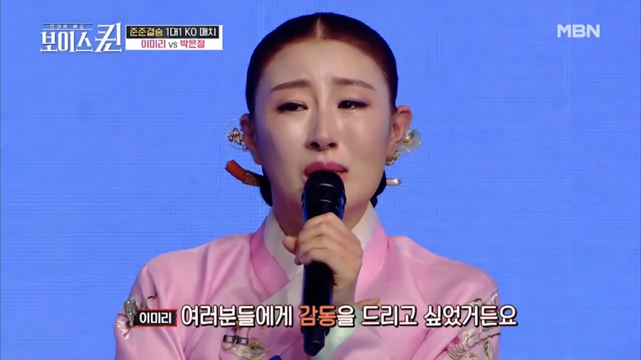 이미리는 경기민요를 알리고 싶어 방송에 출연하게 되었다고 합니다. 트로트로 알려지면 경기민요가 더 사랑받을 수 있을거라 생각했다네요. '보이스퀸'에 참가하기 전부터 주목을 받았는데 친구 송가인의 응원 덕분이라고 했습니다. 그리고 예능 '아내의 맛'에서 송가인 친구로 출연하여 경기 민요를 불렀는데 반응이 좋아서 한줄기 희망을 받았다고 합니다.