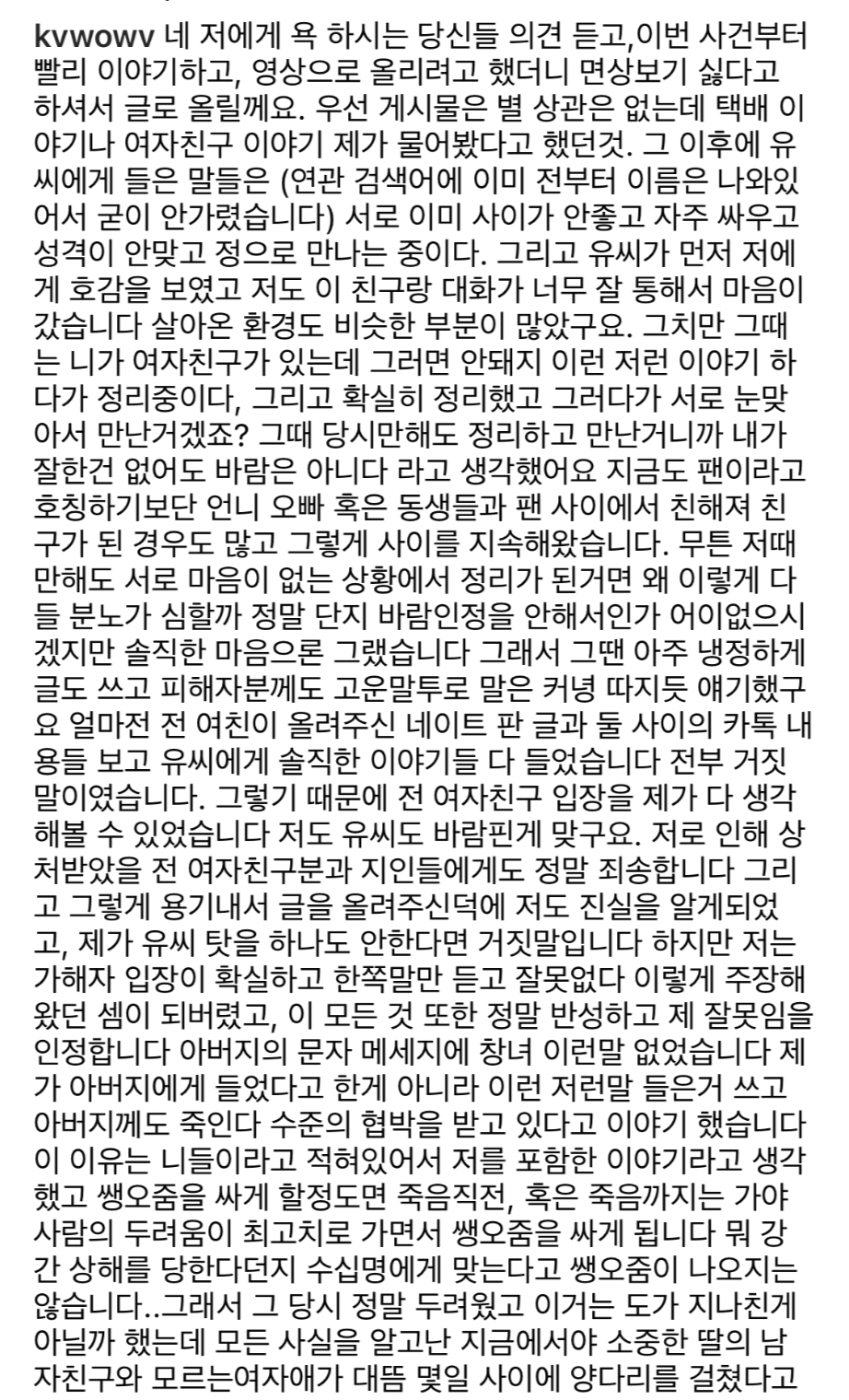 권민아는 4일 자신의 인스타그램을 통해 남자친구를 둘러 싼 양다리, 거짓 해명 등 각종 의혹들에 대한 입장문을 남겼습니다.