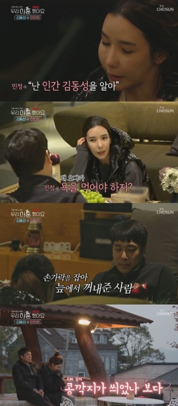 김동성은 "내가 힘들어서 늪에 빠졌을 때 내 손을 잡아 주는 사람이 몇이나 될까 생각해봤다. 내가 늪에서 손가락만 보였는데 너는 그 손가락을 잡아서 날 끄집어내 준 사람이다. 정말 고맙다"며 연인 인민정에 향한 신뢰를 내비쳤습니다.