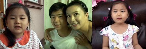 왼쪽 사진은 김혜선 리즈시절 어렸을때 사진, 가운데와 오른쪽은 딸과 아들 사진