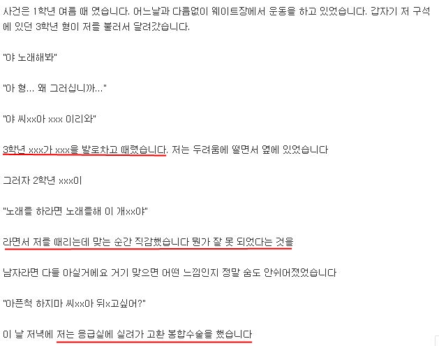 글쓴이는 “폭행이 일상이었던 그때의 우리들의 일상은