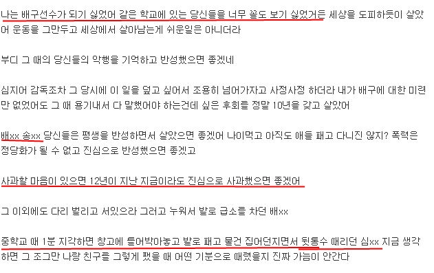 힘이 됐다"며 고교 시절 당한 피해를 폭로했다.