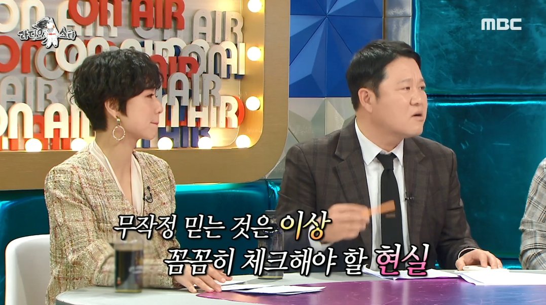 이에 MC들이 “이런 내용을 공유하지 않는다면 어떻게 하나”라는 질문에 “꿍꿍이가 있을 수 있으니 헤어지면 된다”고 단호히 말해 웃음을 자아냈다.