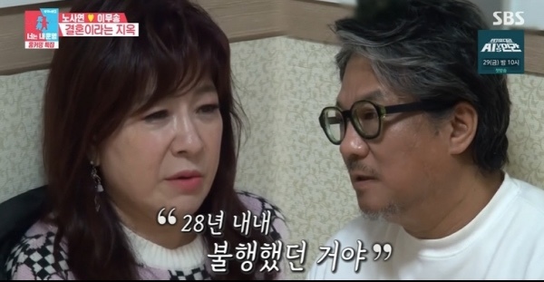 그러면서 두 사람은 28년 결혼 생활 동안 쌓아 뒀던 이야기를 풀어냈다. 노사연은 항상 같은 문제로 싸우는 것에 대해 “당신도 대단하고 나도 대단하다”고 말했고, 이무송은 “나는 지난 10년간”이라며 이야기를 꺼냈다. 그러자 노사연은 “그럼 18년은 뭐냐. 당신이 10년이 불행했다면 나는 18년이 불행했다. 그럼 28년 내내 우리는 불행했던 거다”고 씁쓸함을 표했다.