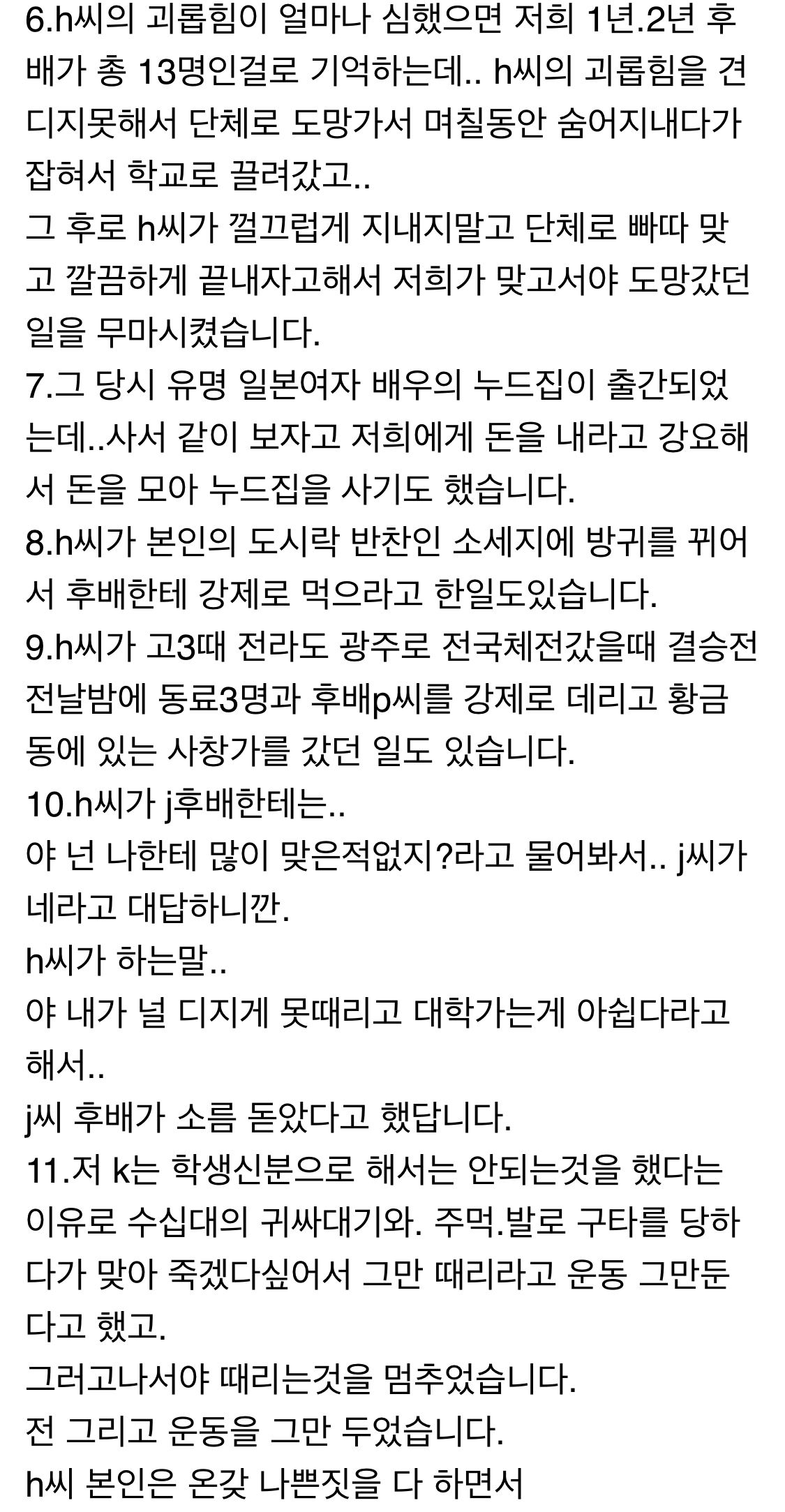 글쓴이 A씨는 H씨가 저질렀다는 폭력, 성매매 등 11가지 만행을 열거했습니다.