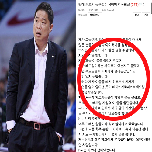 해등 글이 온라인에 퍼지며 논란이 일자 A씨는 글에서 H의 실명을 밝히지 않았지만 휘문중 출신이라는 것과 가족을 언급하면서 네티즌들은 현주엽은 언급한 것이 아니냐고 추측하고 있습니다.