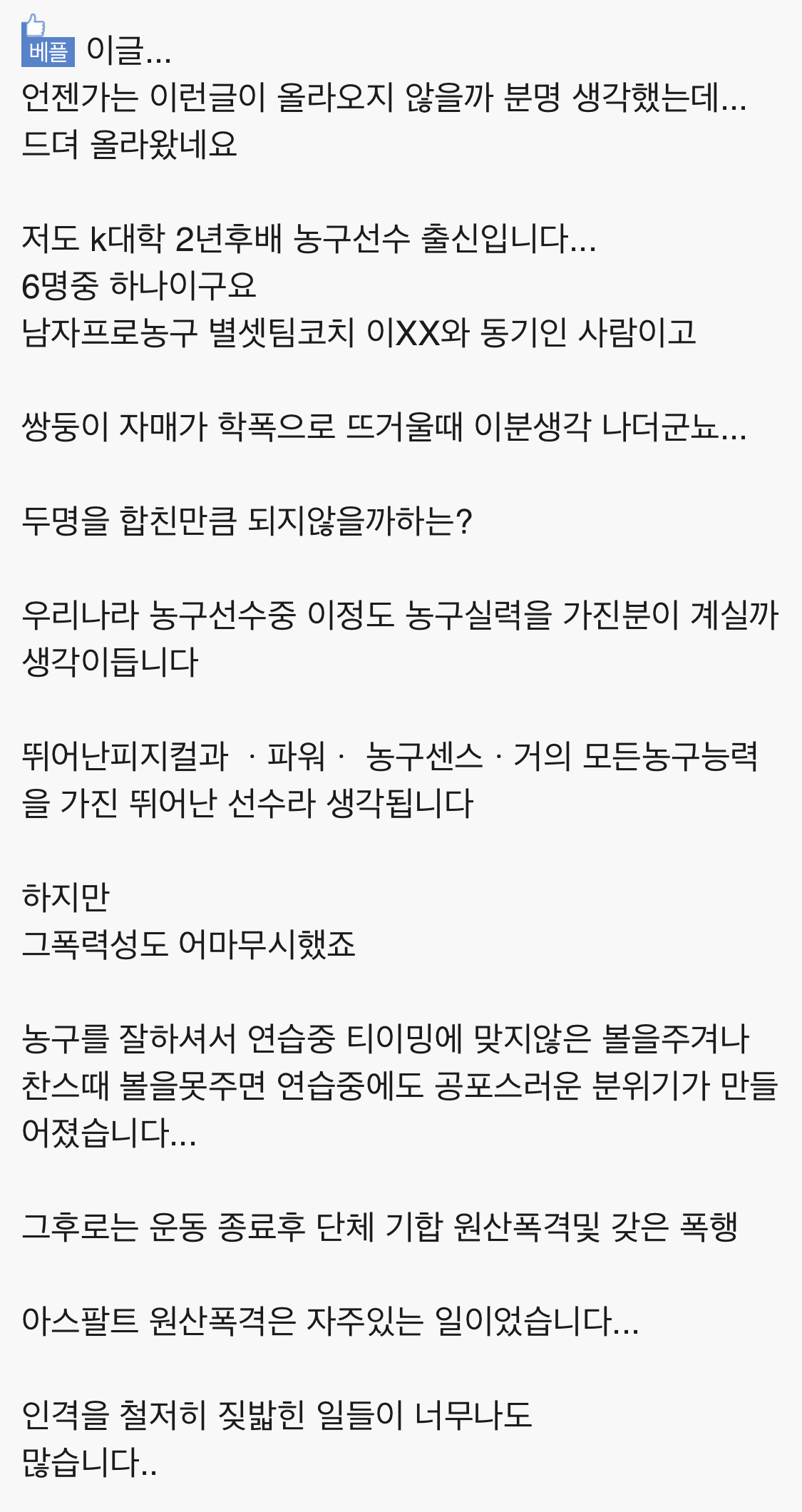 해당 글이 온라인에 올라오자 댓글에는 "쌍둥이 자매가 학폭으로 뜨거울 때 이분 생각나더군요 두 명을 합친 만큼 되지 않을까 하는?" 댓글이 올라왔는데요, 이 댓글 또한 이슈가 되고 있습니다.