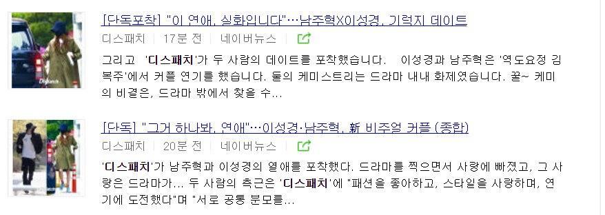 디스패치 이성경 남주혁 데이트 사진 공개