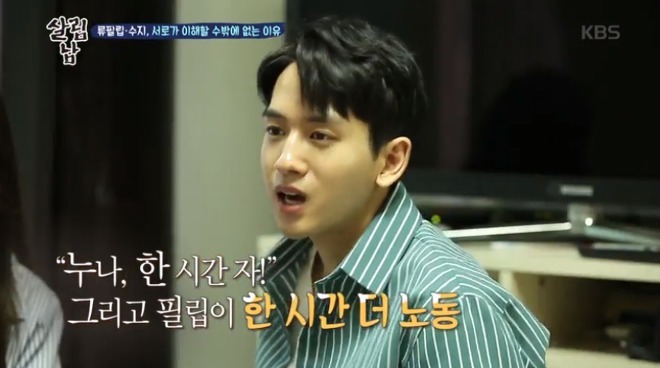"누나 한시간 자" 라고 말하고 류필립이 마무리하고 또 그가 피곤하면 누나가 한시간동안 마무리를 해주고 서로 그렇게 일을 했다고....