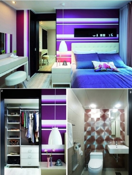특히 침실은 잘 사용하지 않는 퍼플 컬러를 사용해서 고급스럽고 세련된 느낌을 주었네요.