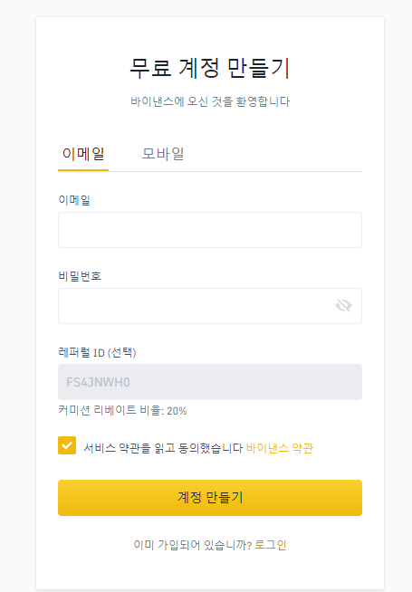 제 레퍼럴 코드(현물 20%, 선물 10%) 로 재가입하시는 것을