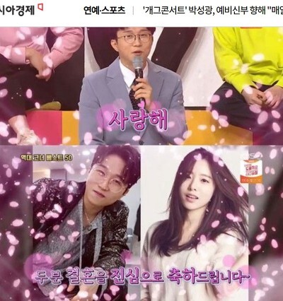 박성광씨와 이솔이씨가 지금까지처럼 너무나 예쁘고 사랑스럽게 알콩달콩 행복한 결혼생활 지속하셨으면 합니다.
