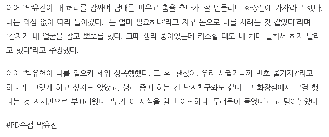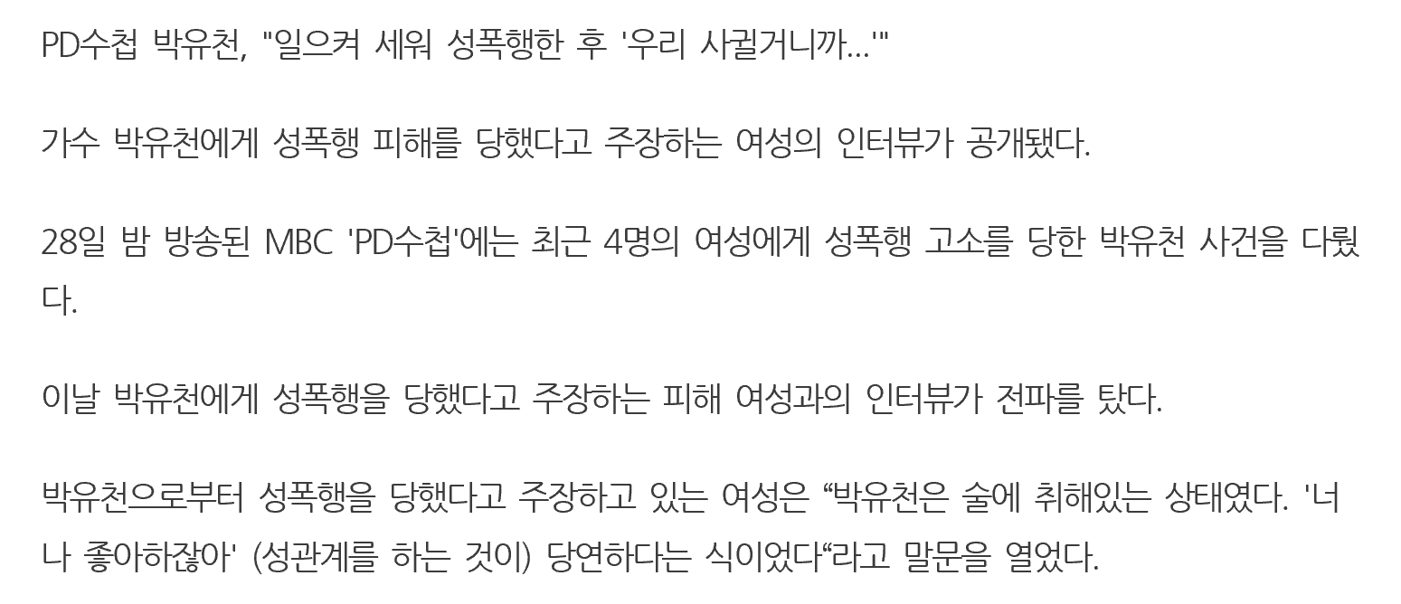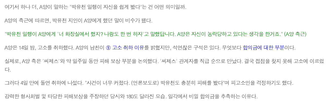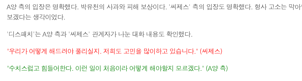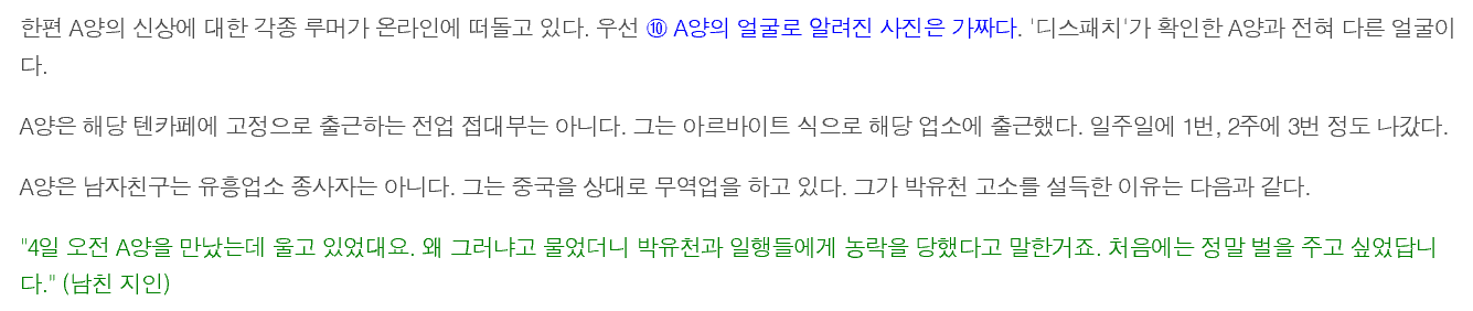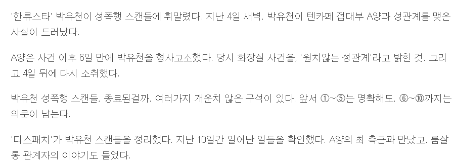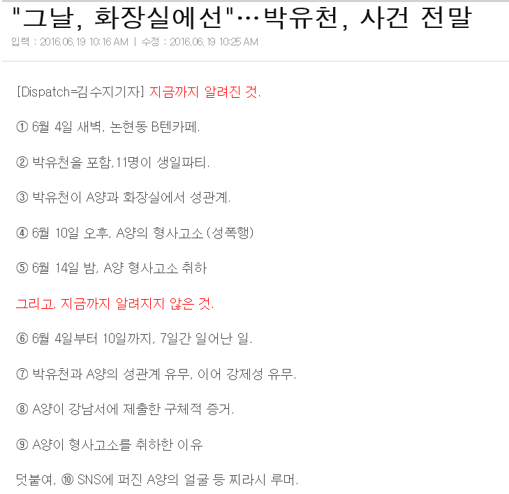 다음은 박유천 사건 고소 취하를 다룬 그 당시 디스패치의 기사이다.