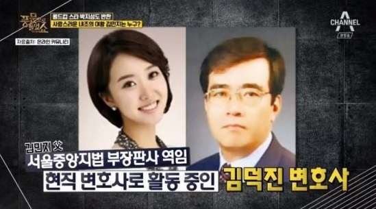 "가족의 이력도 화려하다. 김민지의 아버지는 서울중앙지법 부장판사를 역임하고 현재 변호사로 활동 중인 김덕진 변호사"라며 "어머니는 수원대학교 미술대학 오명희 교수다. 그 사이의 둘째 딸"이라고 설명했습니다.