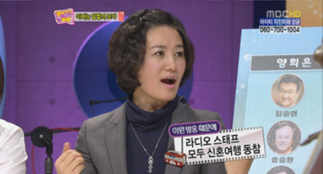라디오 팀 스태프들이 함께 따라가 남자는 남자끼리 여자는 여자끼리 방을 써 김혜영과 남편은 첫날밤인데도 불구하고 서로 각방을 써야만 했다고 하는군요.