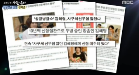 김혜영은 어느 날 아침에 화장실을 갔는데 소변 색깔이 특이한 붉은색이라 이상하게 생각해 작은 병원에 갔지만 결국 큰 병원에 가야만 했다고 하는데요.