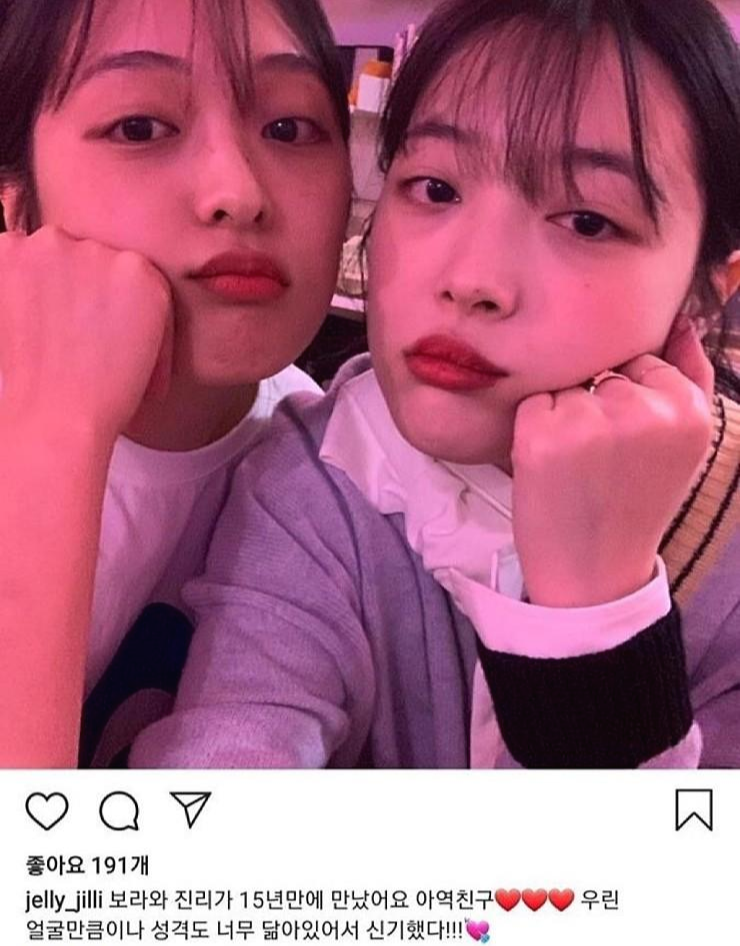 설리는 지난해 자신의 sns를 통해 "아역 친구 우린 얼굴만큼이나 성격도 너무 닮아있어서 신기했다"라는 글귀를 남겼는데요.